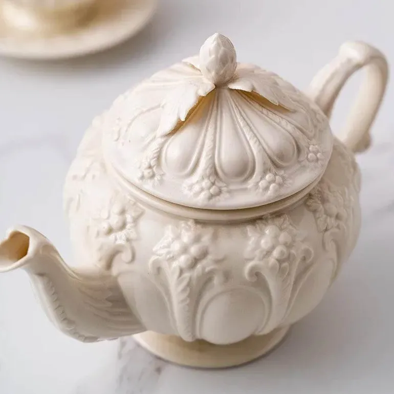 Erleben Sie die zeitlose Schönheit dieses weißen Porzellan-Teeservices, das sorgfältig für Ihre englischen Nachmittagstee-Treffen und gemütlichen Kaffeemomente gefertigt wurde. Jedes Stück dieser Kollektion ist aus hochwertigem Porzellan gefertigt und strahlt eine charmante Kombination aus Raffinesse und einladender Wärme aus.