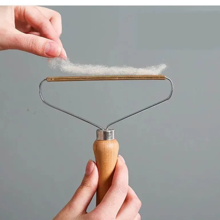 Wir präsentieren ein hochwertiges Haarentfernungswerkzeug, das Haare, Fusseln und Flusen effektiv von Kleidung und Strickwaren entfernt. Dieser Haarschaber besteht aus einer robusten Metall-Holz-Mischung und vereint Funktionalität mit ansprechender Ästhetik. Er ist ein unverzichtbares Accessoire für alle, die das makellose Aussehen ihrer Kleidung bewahren möchten.