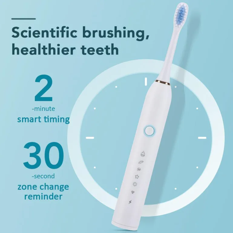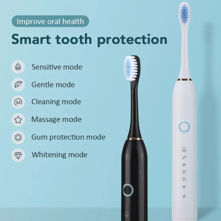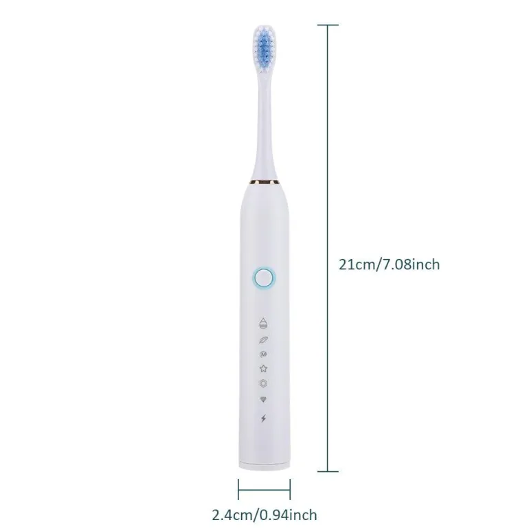 Verbessern Sie Ihre Mundhygiene mit dieser fortschrittlichen elektrischen Schallzahnbürste für eine gründliche und effektive Reinigung. Mit sechs anpassbaren Reinigungsmodi, einem hochintensiven Vibrationsmotor und intelligenten Putzfunktionen sorgt diese Zahnbürste für ein gesünderes Lächeln und macht Ihre tägliche Routine mühelos.