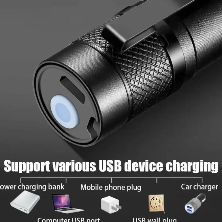 Im Lieferumfang enthalten ist eine wiederaufladbare Mini-Taschenlampe für taktisches Camping, die Ihnen in jeder Situation zur Seite steht. Dank ihres durchdachten Designs und ihrer zuverlässigen Leistung ist diese Taschenlampe Ihr treuer Begleiter für all Ihre Abenteuer.