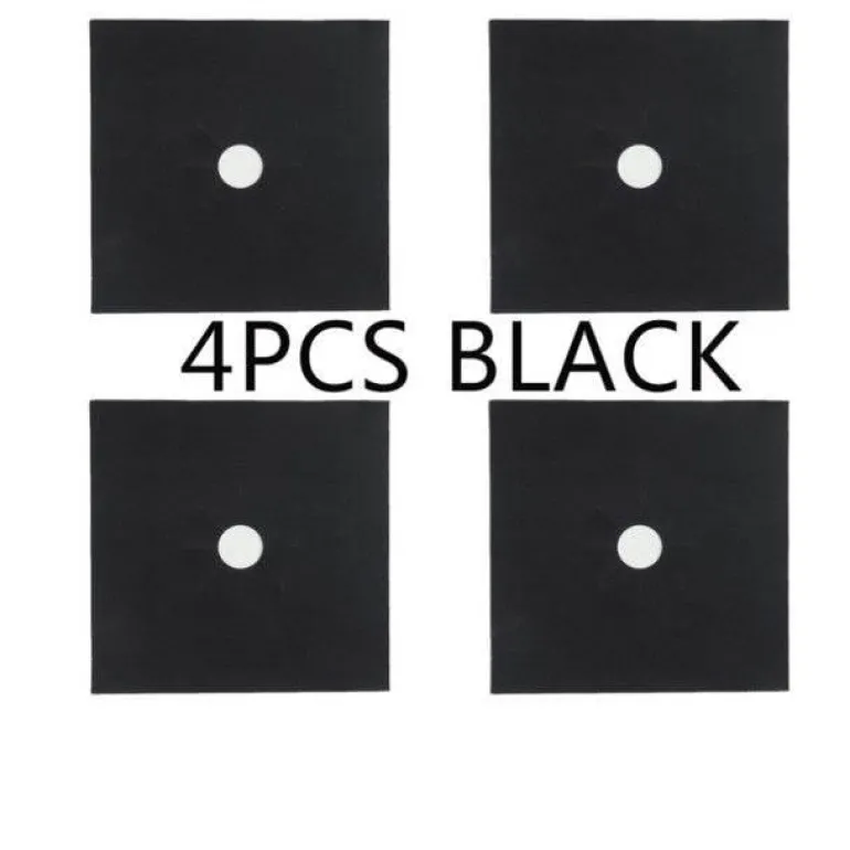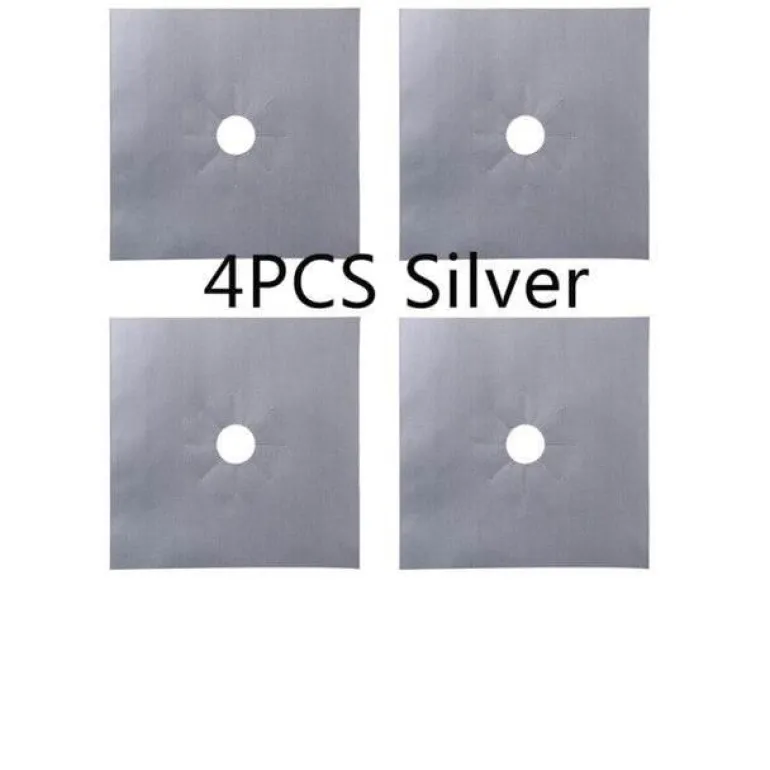 – 4 wiederverwendbare Gasherd-Abdeckungen aus Glasfaser.