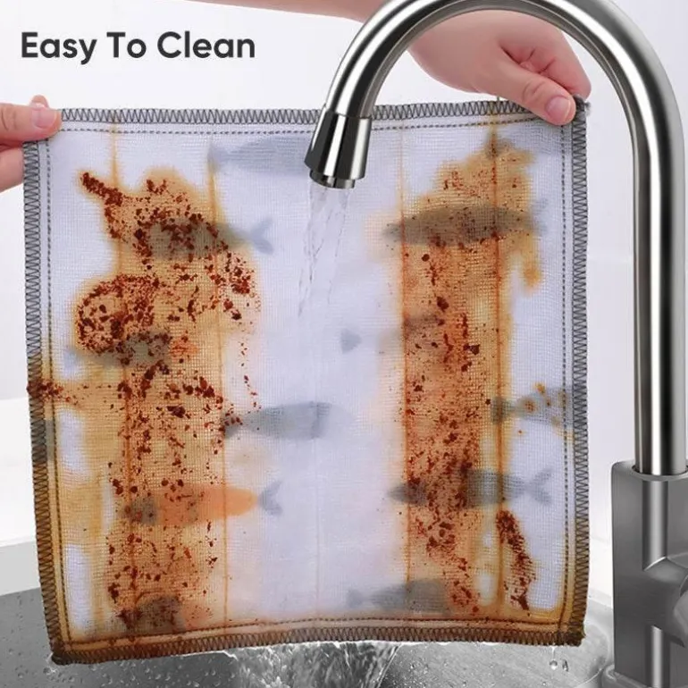 Diese Tücher bestehen aus acht Lagen Baumwolle und sind so konzipiert, dass sie während des Gebrauchs nicht fusseln und so eine effektive und zuverlässige Reinigungsleistung bieten. Sie lösen fettigen Schmutz auf natürliche Weise mit nur Wasser und sorgen so für müheloses und effizientes Reinigen in der Küche.
