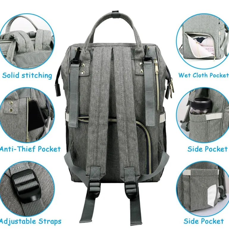 1 x USB-Windelrucksack für Mütter und Babys mit großer Kapazität.