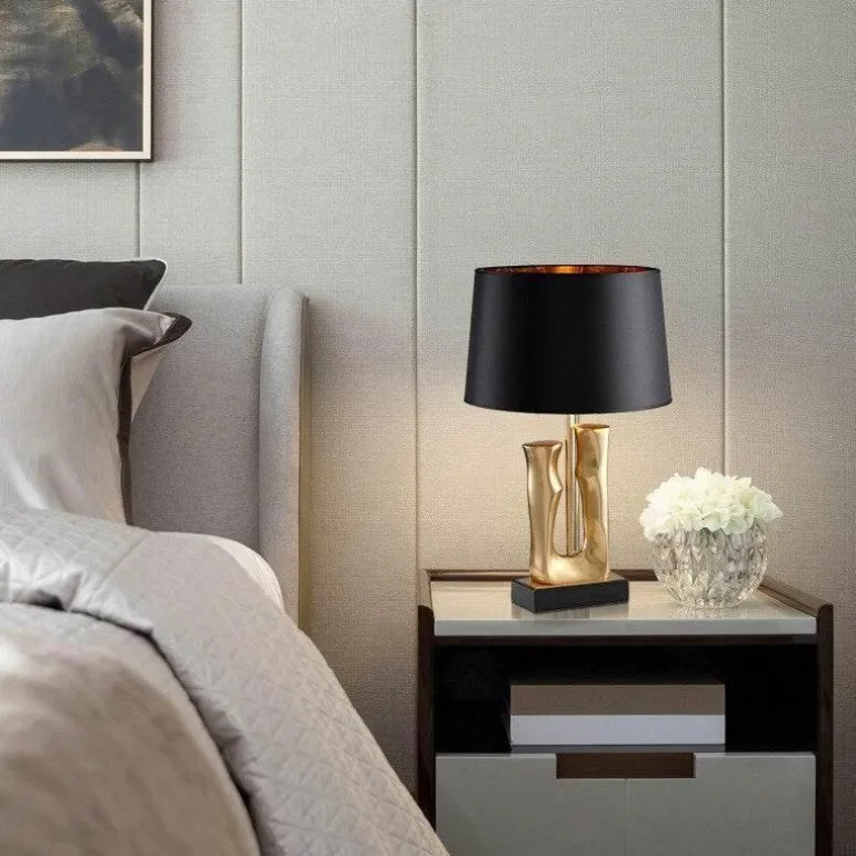 Wir präsentieren die Tischleuchte Zaha aus der Fulton-Kollektion – eine moderne Leuchte, die Ihren Wohnraum elegant und praktisch zugleich verschönert. Diese Leuchte besticht durch die markante Kombination aus vergoldetem Metall und stabilem Betonsockel, perfekt harmoniert mit einem eleganten schwarzen Stoffschirm. Sie ist nicht nur ein Blickfang, sondern sorgt auch für eine effektive Beleuchtung Ihres Zuhauses.