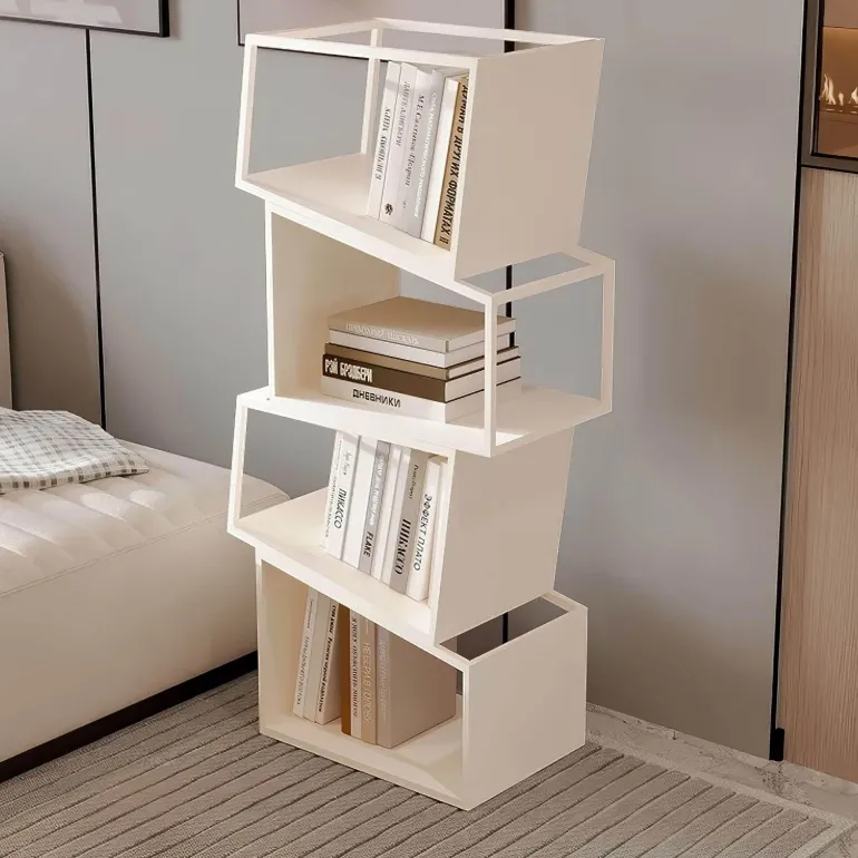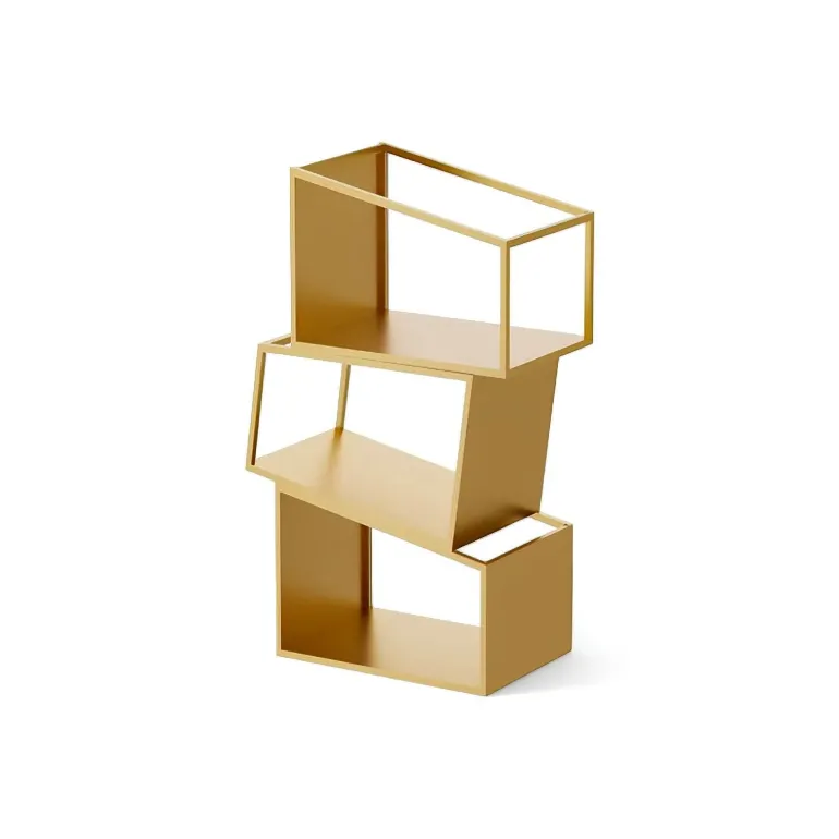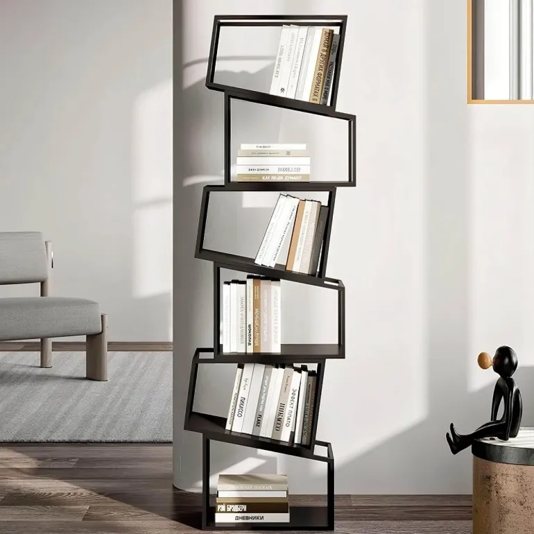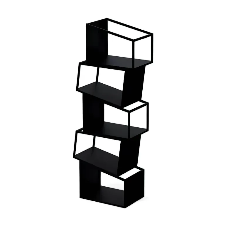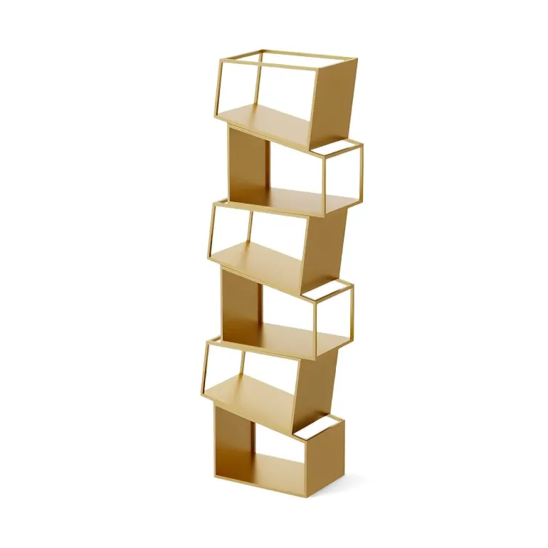 Erleben Sie die perfekte Kombination aus Funktionalität und modernem Design mit diesem modernen Bücherregal. Aus robustem Metall gefertigt, bietet dieses Bücherregal robusten Halt und eine zeitlose Ästhetik und ist damit eine wertvolle Ergänzung für jeden Wohnraum. Das Zane Bücherregal besticht durch die auffällige Anordnung asymmetrischer Regalböden, die von links nach rechts verlaufen und eine dynamische und kunstvolle Silhouette bilden, die mühelos die Blicke auf sich zieht.