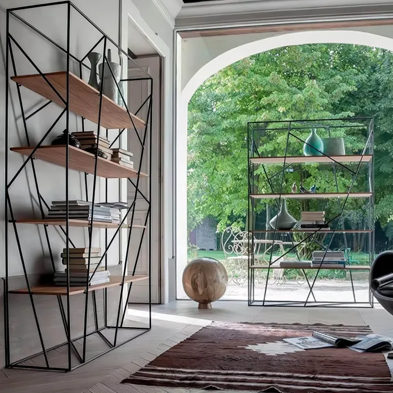 Das Adrien Bücherregal besticht durch eine raffinierte Kombination aus hochwertigem Metall und Holz und verleiht jedem Raum eine moderne Note. Die vielseitigen Regale sind in verschiedenen Größen erhältlich und eignen sich ideal zur Präsentation von Büchern, Dekorationsgegenständen oder Pflanzen.