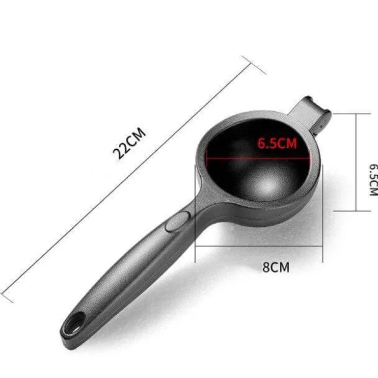 Für erfrischenden Zitronensaft schneiden Sie einfach eine Zitrone in zwei Hälften, legen sie in die Presse und drücken leicht auf den Griff. Das horizontale Design ermöglicht effizientes Entsaften und macht die Presse zu einer praktischen Ergänzung für Ihre Küche. Ob Sie Ihrem Lieblingsgericht oder Cocktail einen Spritzer Zitrone hinzufügen – diese Saftpresse ist ein zuverlässiges Werkzeug für jeden Zitrusliebhaber.