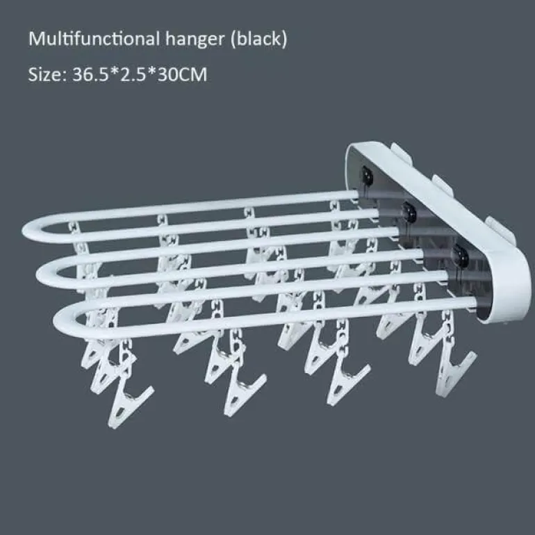 Wir präsentieren unseren innovativen, faltbaren Sockentrockner zur Wandmontage. Er ist mit einem praktischen Ein-Knopf-Mechanismus für eine einfache Bedienung ausgestattet. Dieser vielseitige und platzsparende Wäscheständer erfüllt Ihre Trockenbedürfnisse effektiv, ohne Ihren Wohnraum zu überladen.