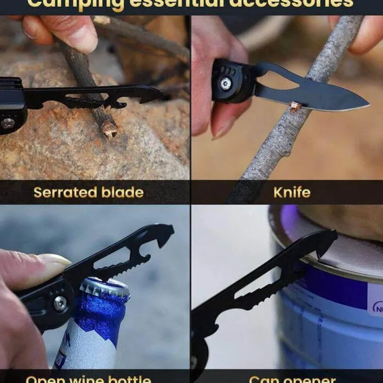 Statten Sie sich mit diesem All-in-One-Outdoor-Werkzeug aus, das sich perfekt für alltägliche Reparaturen und die Verbesserung Ihrer Outdoor-Erlebnisse eignet.