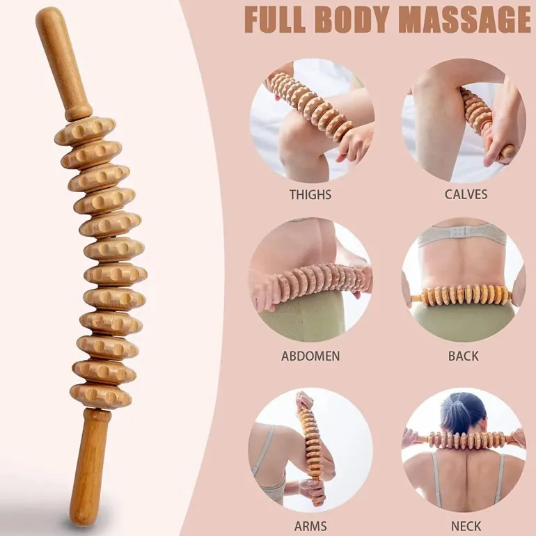 Lösen Sie Muskelverspannungen und fördern Sie die Entspannung mit diesem hölzernen Massagestab für den ganzen Körper. Ob Nacken, Rücken, Taille oder Beine – die rollende Bewegung lindert Beschwerden und fördert die Durchblutung. Er eignet sich außerdem hervorragend zur Unterstützung der Verdauung bei sanfter Bauchmassage.