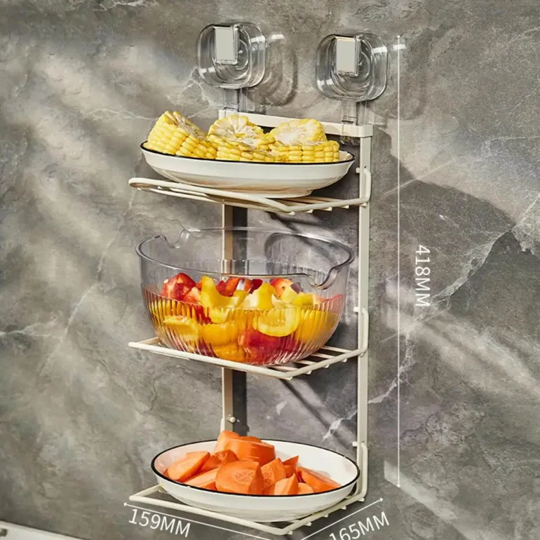 – 1 x wandmontiertes 3-lagiges Organizer-Rack für die Lebensmittelzubereitung