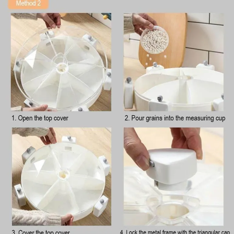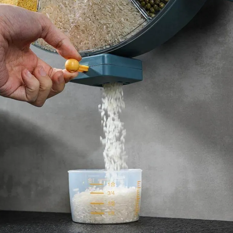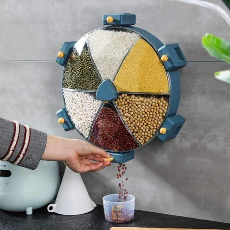 Halten Sie Ihr Müsli und Getreide mit diesem vielseitigen Wandbehälter frisch und griffbereit. Diese platzsparende Lösung bietet Platz für eine Vielzahl von Lebensmitteln und ist somit ideal für Müsli, Reis und mehr. Dank des innovativen 360-Grad-Drehdesigns ist jedes Fach leicht zugänglich und vereinfacht so das Entnehmen und Nachfüllen.