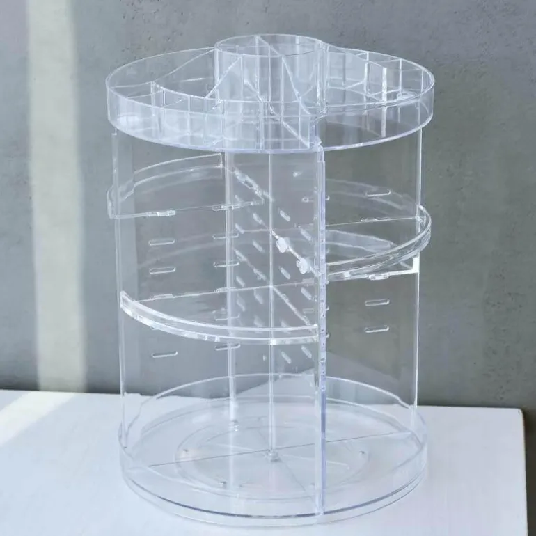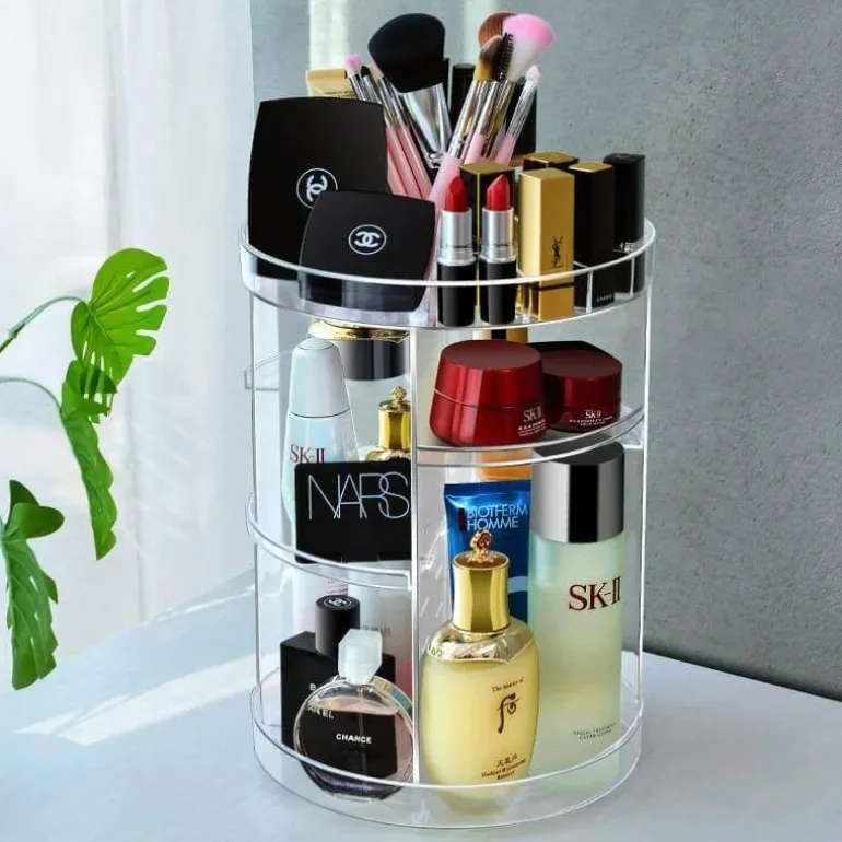 Dieser durchdachte, drehbare Organizer sorgt für einen aufgeräumten Arbeitsplatz und sorgt dafür, dass Reinigungsmittel, Make-up und Accessoires stets griffbereit sind. Die robusten, dicken Ablagen aus hochwertigem Acryl bieten sicheren Halt für eine Vielzahl von Kosmetikprodukten. Der innovative Drehboden ermöglicht mühelosen Zugriff, sodass Sie schnell finden, was Sie brauchen.