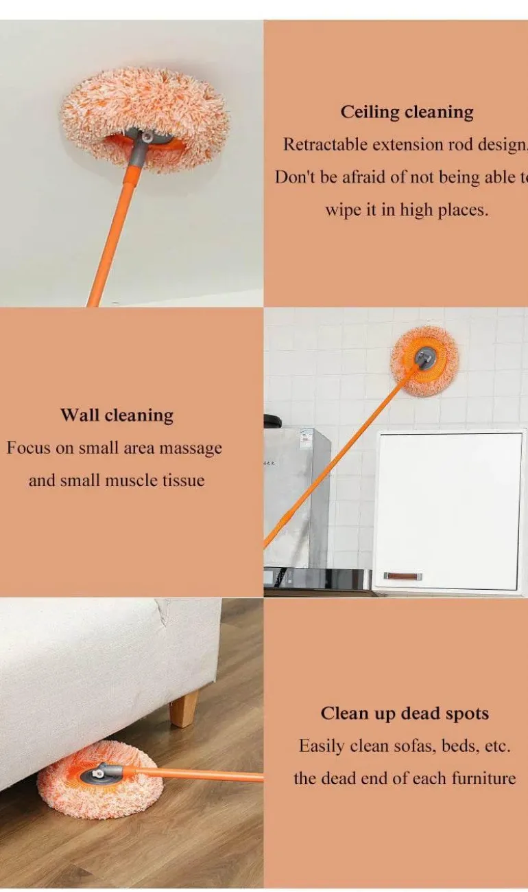 Dieser Mopp ist beidseitig mit Spannschnallen ausgestattet, die eine einfache Montage und einen einfachen Austausch ermöglichen. Ziehen Sie einfach, um den Moppkopf zu fixieren. Der moderne, um 360 Grad schwenkbare Moppkopf bietet außergewöhnliche Manövrierfähigkeit und sorgt dafür, dass jeder Winkel gründlich gereinigt und glänzend bleibt.