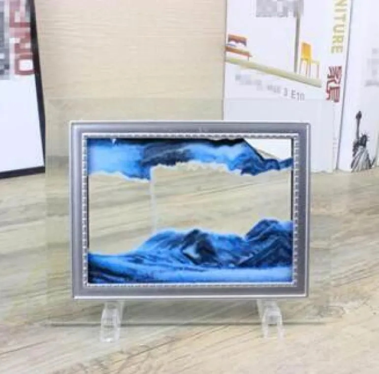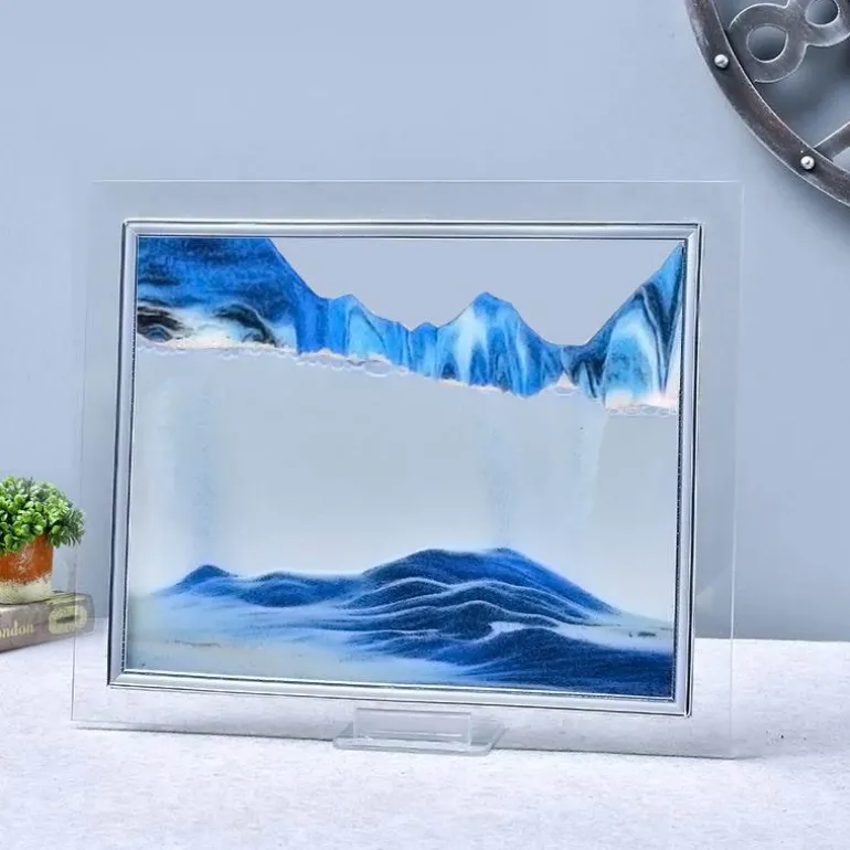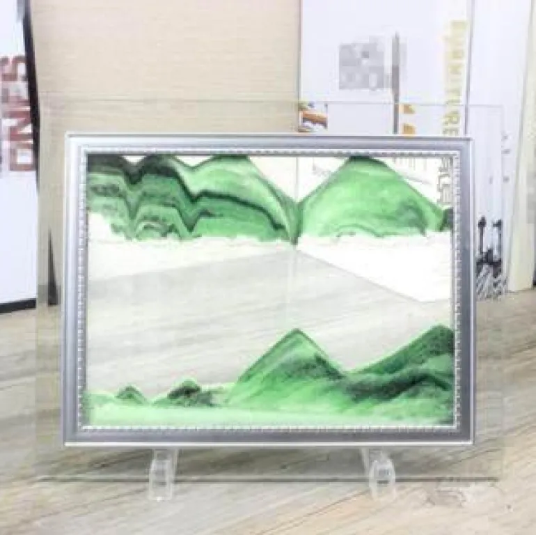 Erleben Sie die ruhige Schönheit unseres 3D-Flow-Sand-Malrahmens, eines einzigartigen dekorativen Kunstwerks, das Ihr Zuhause oder Büro verschönert. Jedes Mal, wenn Sie den Rahmen umdrehen, tauchen atemberaubende Landschaften mit Bergen, Tälern und Dünen auf und schaffen ein sich ständig veränderndes Meisterwerk, das die Sinne fesselt.