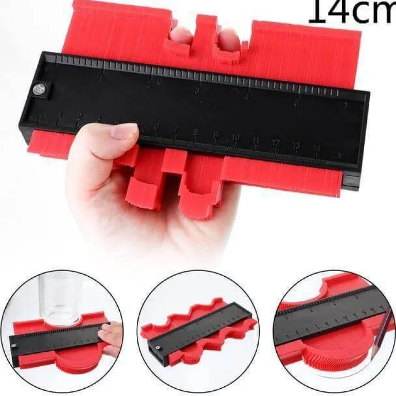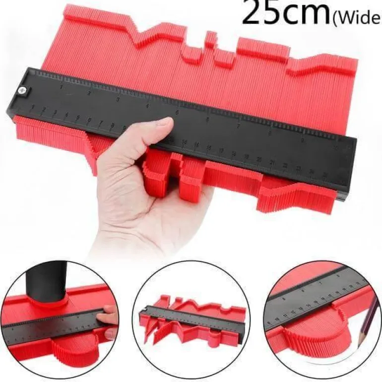 Die einfache Handhabung ist ein wichtiges Merkmal: Drücken Sie die Konturlehre einfach gegen ein Objekt, um dessen Profil zu erfassen, und schneiden Sie es anschließend in Form. Dieses Werkzeug eignet sich hervorragend zum Verlegen von Fliesen, Laminat, Teppichen, zur Maßkontrolle und für Formarbeiten.