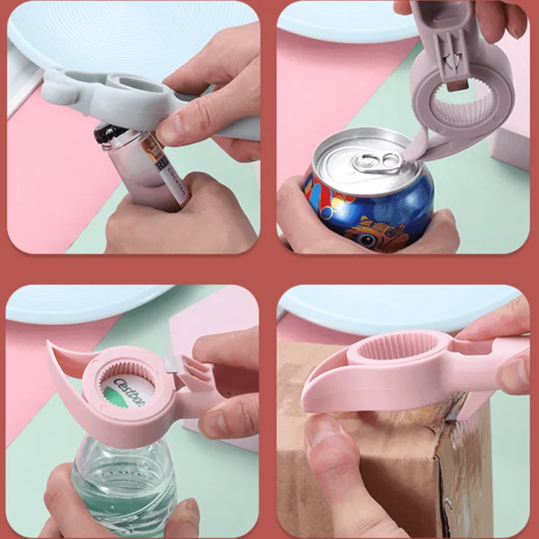 Verbessern Sie Ihr kulinarisches Erlebnis mit dem vielseitigen 5-in-1-Deckellöser, der die Zubereitung von Speisen und Getränken vereinfacht. Dieses multifunktionale Küchengerät öffnet mühelos Flaschen, entfernt Korken aus Weinflaschen und hantiert mühelos Glasdeckel – für mehr Spaß bei der Essenszubereitung und beim Bewirten.