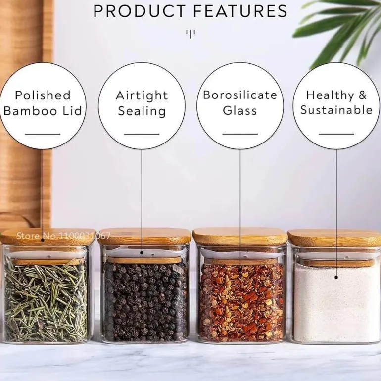 Diese vielseitigen Gläser eignen sich zum Aufbewahren verschiedenster Lebensmittel. Von den reichhaltigen, aromatischen Noten von Kaffeebohnen bis hin zum wohltuenden Duft von Teeblättern – jedes Glas sorgt dafür, dass Ihre Lieblingszutaten frisch bleiben und schön präsentiert werden. Mit ihrem schicken Bambusdeckel verleihen diese Gläser Ihrer Küche einen Hauch natürlicher Eleganz.