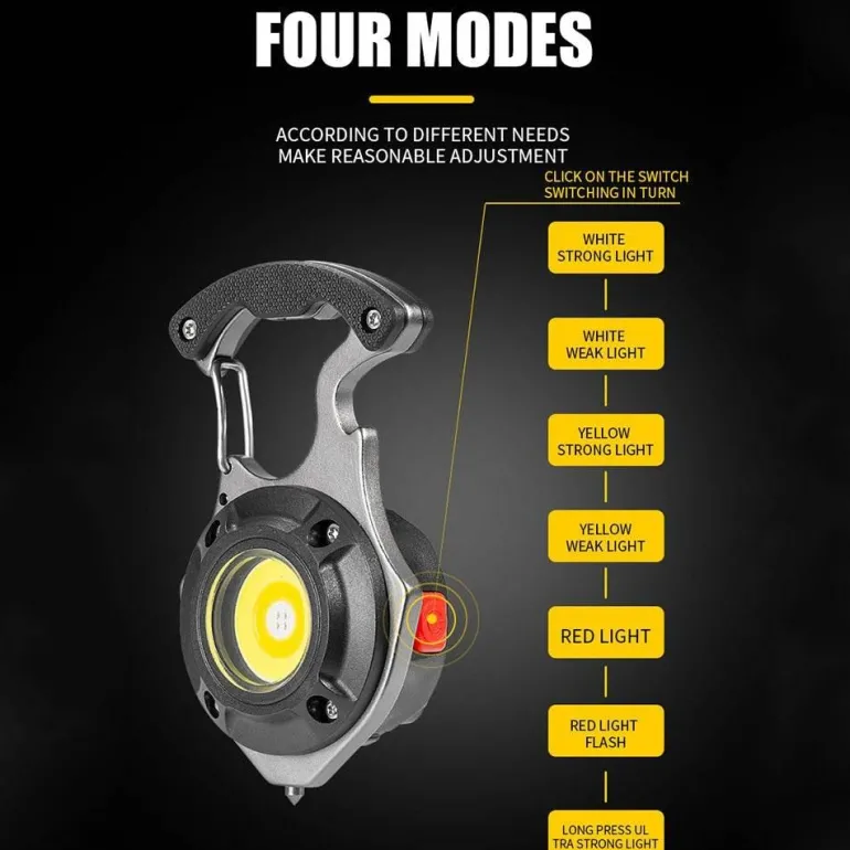 Erleben Sie die Funktionalität der 7-in-1-Schlüsselanhängerlampe, ein unverzichtbares Werkzeug für Outdoor-Fans und Camper. Diese kompakte Überlebensleuchte verfügt über sieben vielseitige Funktionen, die Sie in verschiedenen Situationen unterstützen. Die helle LED-Beleuchtung ist perfekt für die Navigation im Dunkeln. Zusätzliche Werkzeuge wie Schraubendreher, Fensterhammer und mehr sorgen dafür, dass Sie für jedes Abenteuer bestens gerüstet sind. Dieser Schlüsselanhänger ist eine wertvolle Ergänzung Ihrer Outdoor-Ausrüstung.