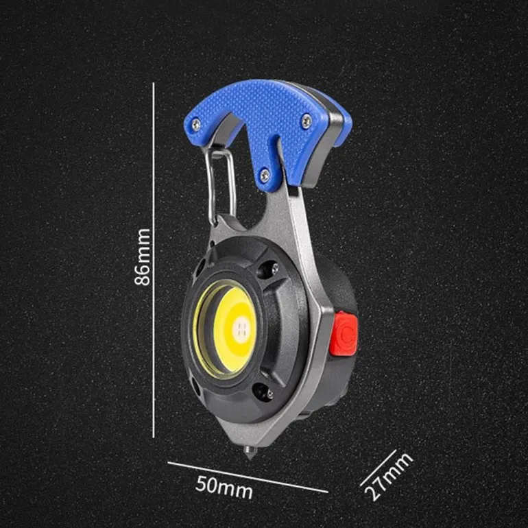 Die Typ-C-Ladeschnittstelle sorgt für effizientes Laden, während der Lithium-Polymer-Akku über eine Ladestandsanzeige verfügt und so für langanhaltende Leistung sorgt. Seine Multifunktionsfunktionen umfassen Flaschenöffner, Fensterhammer, Schraubendreher, Gurtschneider und Arbeitsleuchte und machen ihn zum idealen Begleiter für Wanderungen, Camping und Abendaktivitäten.