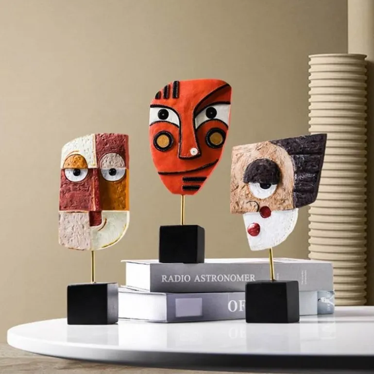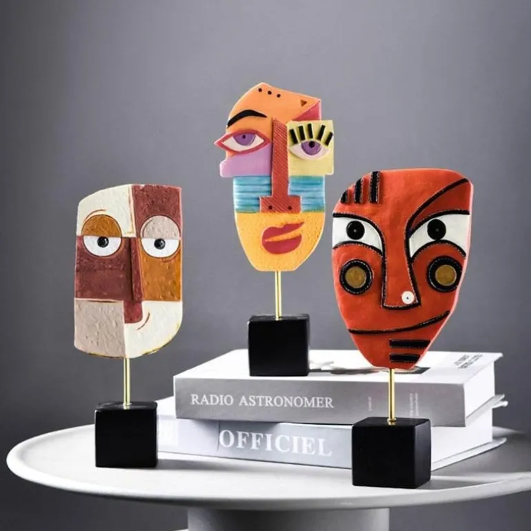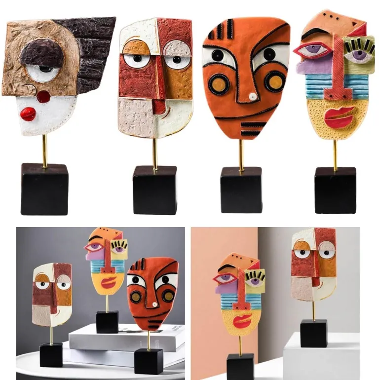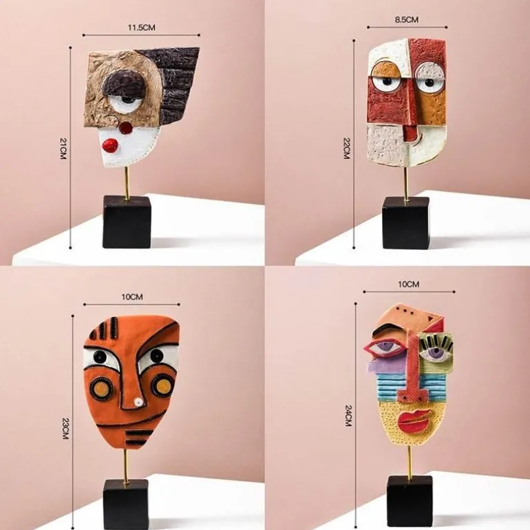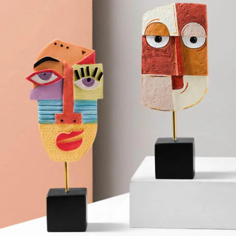 Verschönern Sie Ihr Wohnambiente mit dieser markanten abstrakten Gesichtsskulptur, einem Stück moderner Pop-Art, das jedem Raum Kreativität verleiht. Diese faszinierende Skulptur eignet sich ideal für Schreibtisch, Tisch, Bücherregal, Esstisch oder Nachttisch und ist ein Blickfang in Ihrer Wohnkultur.