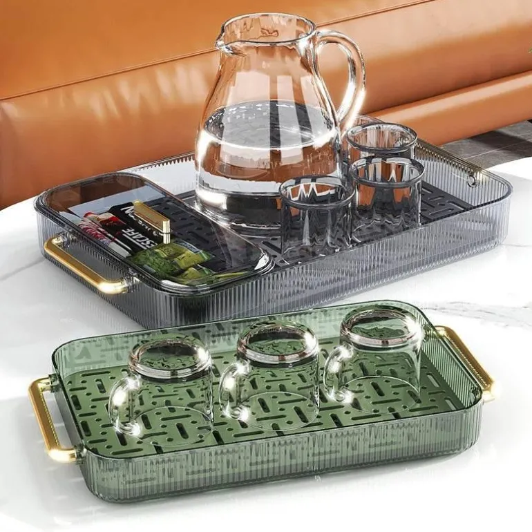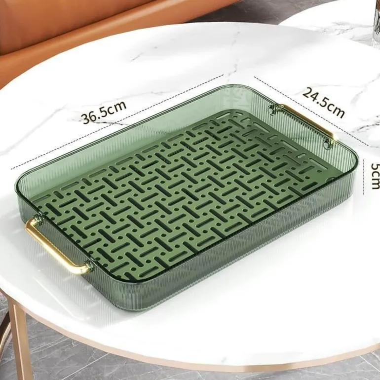 Das rechteckige Design eignet sich perfekt für die Aufbewahrung verschiedenster Gegenstände, von Geschirr bis Obst, während das Gittermuster für einen Hauch von Eleganz sorgt. Das Tablett aus strapazierfähigem Kunststoff ist leicht zu reinigen und zu pflegen und somit eine praktische Wahl für den täglichen Gebrauch.