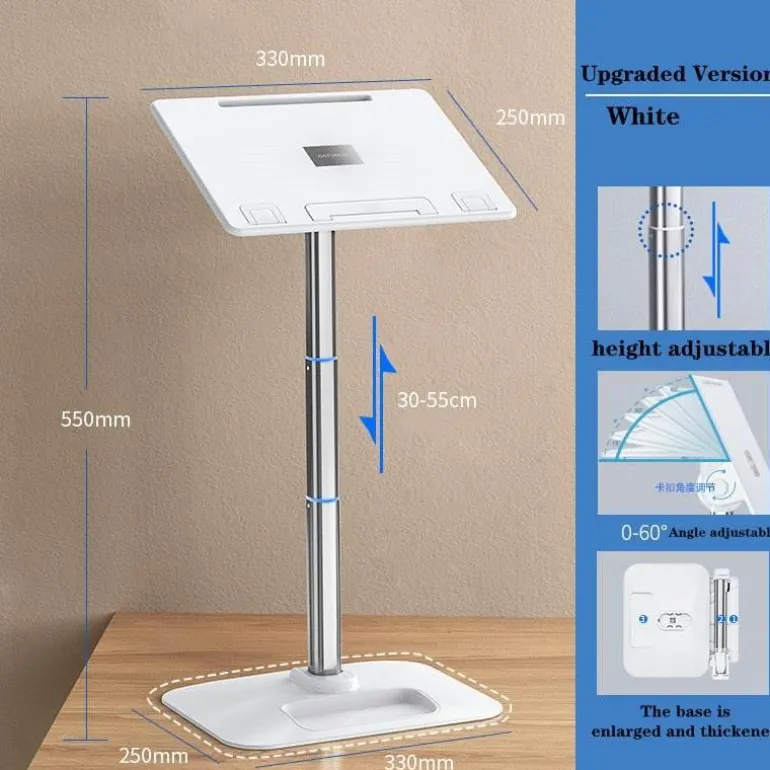 This multifunctional stand accommodates laptops and tablets ranging from 4 to 13 inches. Additionally, it can serve as a projector stand or a book holder for reading materials, sheet music, and cookbooks. The stand features a unique anti-page turning design, allowing you to concentrate on your tasks without distractions. This practical accessory is ideal for various activities, including enjoying meals in comfort.