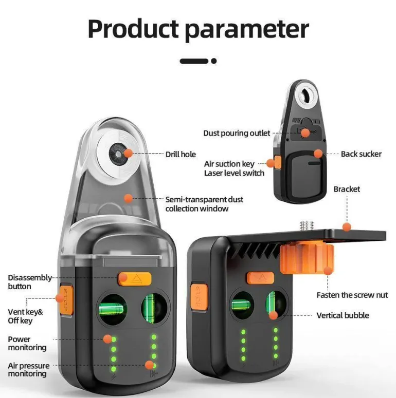 Erleben Sie sauberes und staubfreies Bohren mit unserem kabellosen Staubsammler, der für problemloses Arbeiten auf verschiedenen Oberflächen, einschließlich Betonplatten und Trockenbauwänden, entwickelt wurde. Dieser effiziente Staubsammler fängt während der Arbeit effektiv alle Rückstände auf und sorgt dank der transparenten Abdeckung, die anzeigt, wann der Behälter geleert werden muss, für klare Sicht. Dieses Werkzeug ist mit jeder elektrischen Bohrmaschine mit einem maximalen Bohrfutterdurchmesser von 13 mm kompatibel und eignet sich für eine Vielzahl von Bohranwendungen.