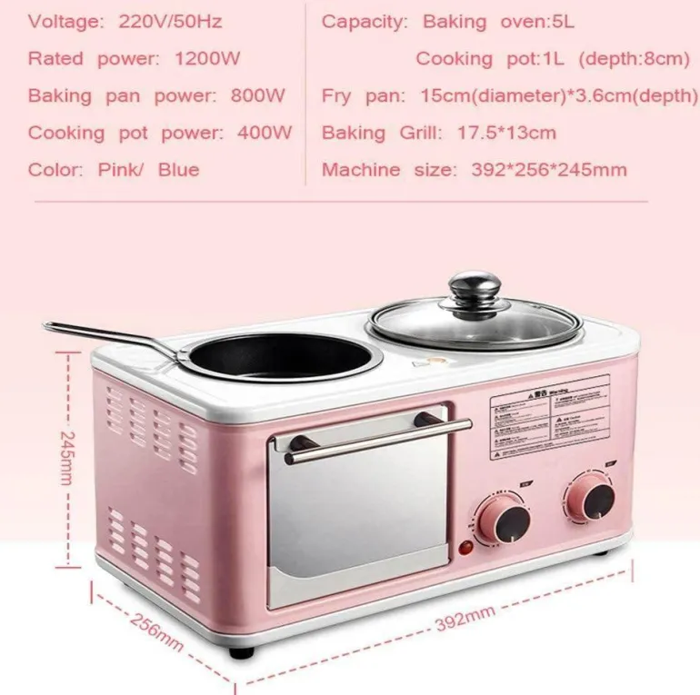 Dieser multifunktionale Toaster bietet vielfältige Kochmöglichkeiten und ermöglicht Ihnen das Backen, Kochen, Kochen und Erwärmen Ihrer Lieblingsgerichte. Er verfügt über einen 5-Liter-Backofen mit Klarglastür für einfaches Überwachen und einen 60-Minuten-Timer für präzises Garen. Der 1-Liter-Kochherd eignet sich ideal für schnelle Mahlzeiten, während die Bratpfanne mit 15 cm Durchmesser perfekt für Eier und andere Lieblingsgerichte ist.