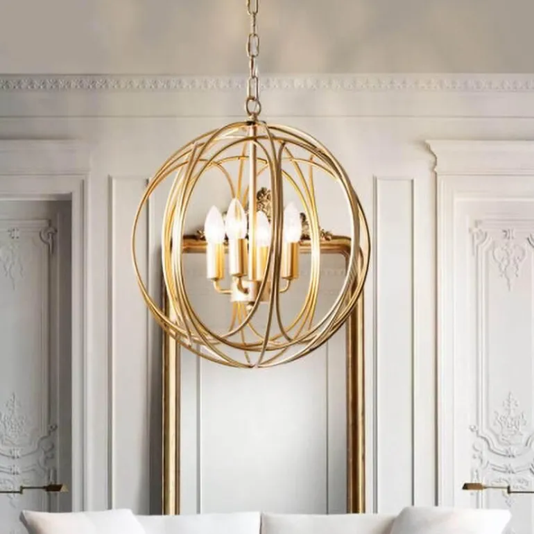Elevate your home decor with this exquisite golden iron chandelier, designed to bring a touch of creative sophistication to any space. Crafted from durable metal, this pendant lamp showcases a unique American village style that enhances the aesthetic appeal of your interiors while providing ample illumination.