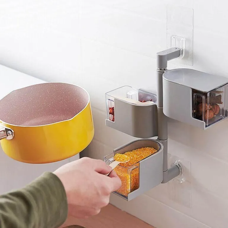 Mit seinem großzügigen Fassungsvermögen bietet dieser Organizer Platz für häufig verwendete Zutaten wie Salz, Zucker, Mononatriumglutamat, Maisstärke, Erdnussmehl, Hühneressenz und eine Vielzahl anderer Gewürze, die Ihre kulinarischen Kreationen verfeinern.