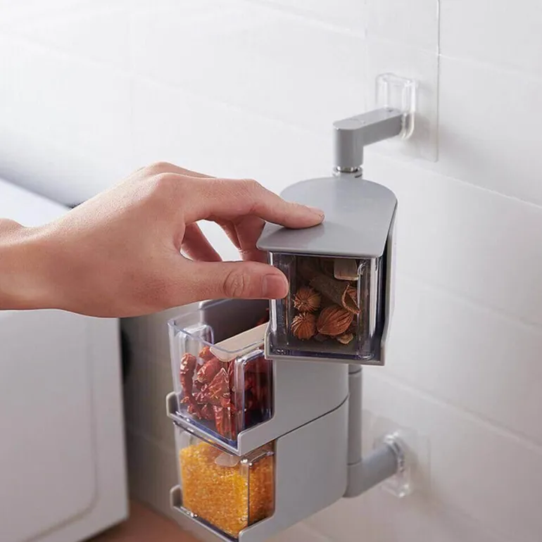 Die Wandmontage ermöglicht eine stanzfreie Montage und bietet eine platzsparende Lösung, die sich perfekt für jede Küche eignet. Die transparenten Behälter bieten klare Sicht auf den Inhalt und ermöglichen Ihnen, Ihre Lieblingsgewürze schnell zu finden. Jede Gewürzbox lässt sich horizontal um 360 Grad drehen und ermöglicht so mühelosen Zugriff – schieben Sie die Gläser einfach nach links oder rechts.