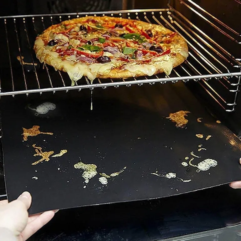 Die PTFE-beschichtete Oberfläche sorgt für ein zuverlässiges Antihaft-Kocherlebnis und sorgt dafür, dass Ihr Essen mühelos und rückstandsfrei abrutscht. Die Reinigung ist unkompliziert: Weichen Sie die Matte einfach ein und wischen Sie sie mit handelsüblichen Haushaltsreinigern ab.