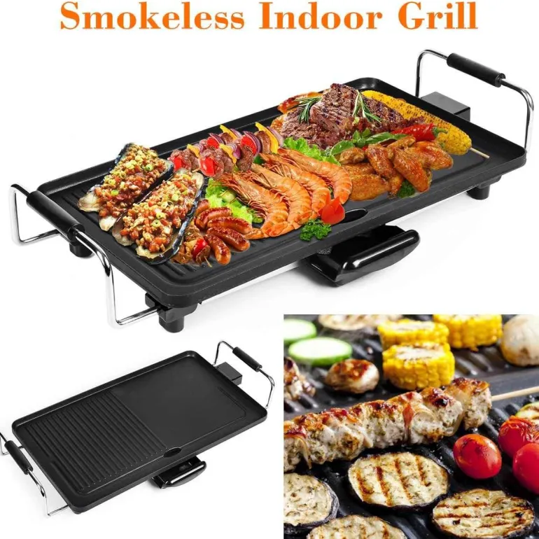 Entdecken Sie den Komfort vielseitigen und gesunden Kochens mit unserem antihaftbeschichteten, rauchfreien Elektrogrill für den Innenbereich. Mit diesem innovativen Gerät zaubern Sie schmackhafte Gerichte ohne Öl oder Butter und sind somit die ideale Wahl für gesundheitsbewusstes Kochen. Die Antihaftbeschichtung sorgt dafür, dass sich die Speisen leicht lösen, was sowohl den Kochvorgang als auch die Reinigung vereinfacht.