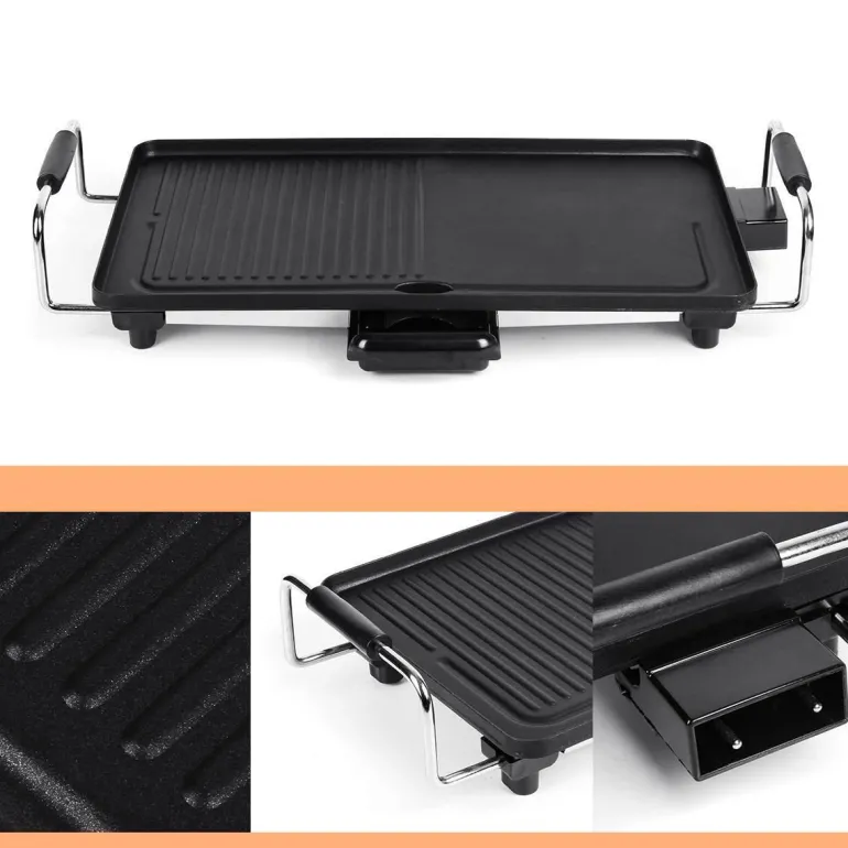 Dank der einstellbaren Temperaturregelung ermöglicht Ihnen dieser Elektrogrill optimale Grillergebnisse – egal ob Gemüse, Fleisch oder Meeresfrüchte. Die herausnehmbare Fettauffangschale fängt überschüssiges Fett effektiv auf und sorgt so für saubere und saubere Arbeitsflächen.