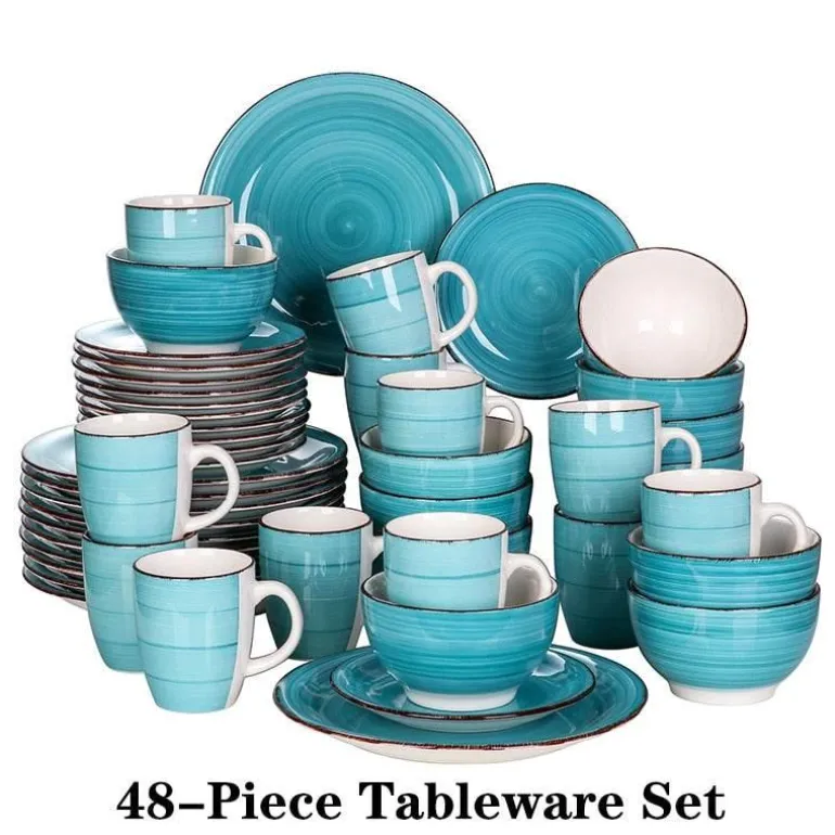 Das Aqua Porzellan-Geschirrset eignet sich sowohl für zwanglose Zusammenkünfte als auch für formelle Anlässe und ist perfekt für alle, die Wert auf Liebe zum Detail beim Essen legen. Erleben Sie die harmonische Verbindung von Funktionalität und Stil mit diesem wunderschönen Geschirr, das durchdacht entworfen wurde, um Ihre Essatmosphäre zu verschönern und Gespräche anzuregen.