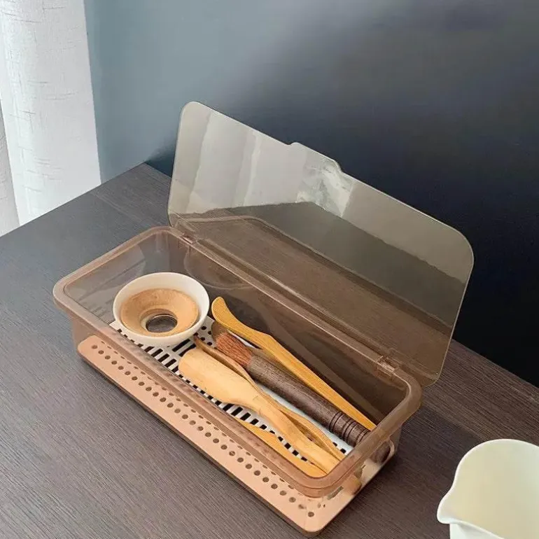Der mitgelieferte Deckel und Löffel sorgen dafür, dass Ihre Teeutensilien sauber und leicht zugänglich bleiben. So vermeiden Sie überladene Arbeitsflächen und schaffen eine übersichtlichere, optisch ansprechendere Atmosphäre. Egal, ob Sie ein leidenschaftlicher Teeliebhaber sind oder einfach nur eine aufgeräumte Umgebung schätzen – dieser Organizer ist eine wertvolle Ergänzung für Ihre Sammlung.
