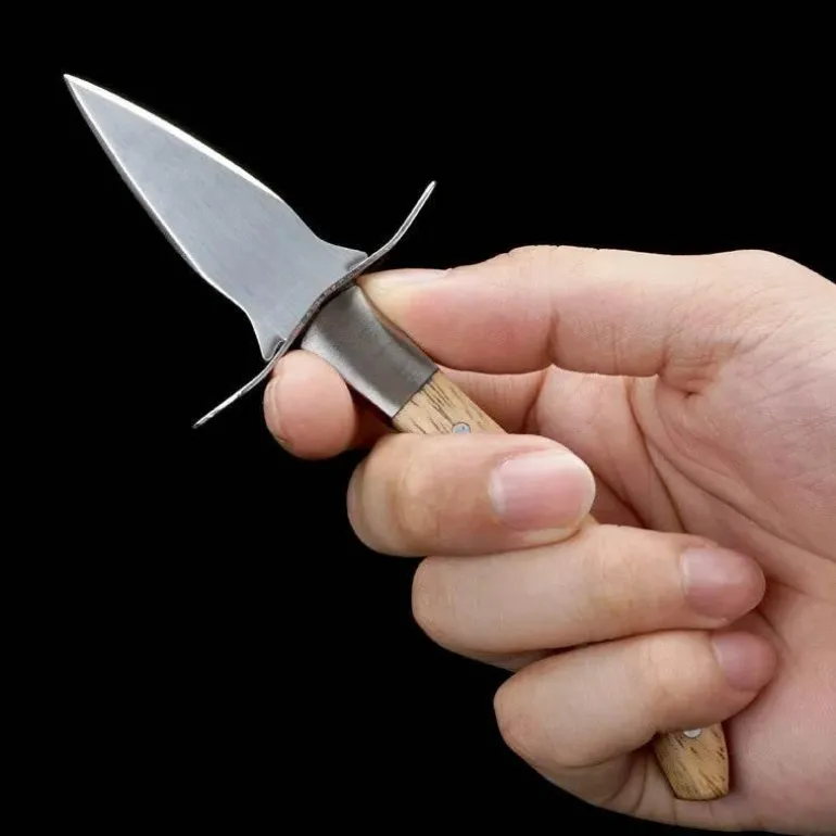 Wir präsentieren unser fachmännisch gefertigtes Austernmesser – ein unverzichtbares Werkzeug für Meeresfrüchte-Liebhaber. Dieses Austernmesser aus Edelstahl verfügt über einen formschönen Holzgriff, der Komfort und Stil beim mühelosen Austernöffnen gewährleistet.