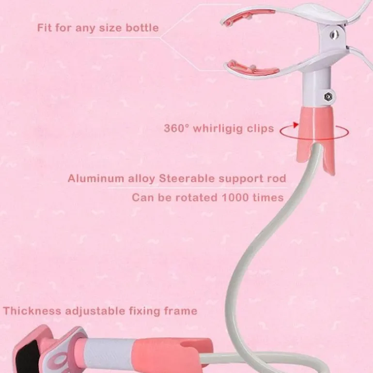 Das ergonomische Design des Halters ist auf verschiedene Flaschenformen abgestimmt und kann an die bevorzugte Trinkposition Ihres Babys angepasst werden, um ein reibungsloses und angenehmes Füttern zu gewährleisten.