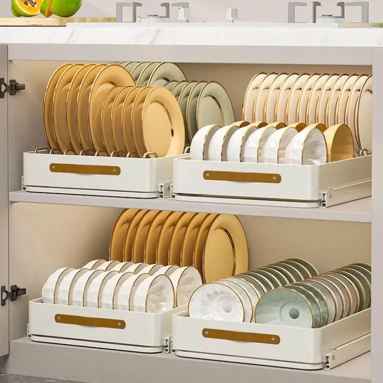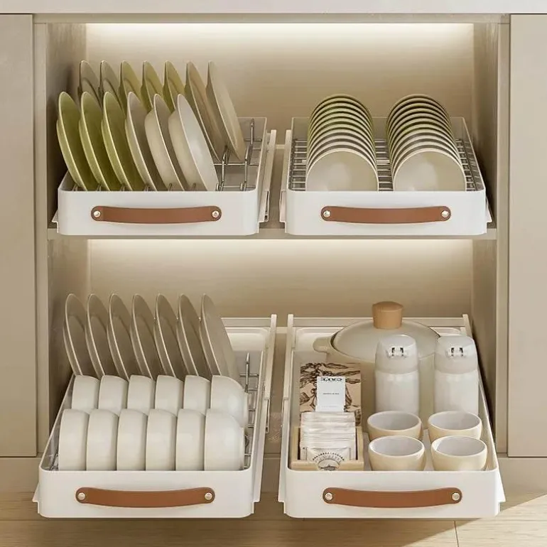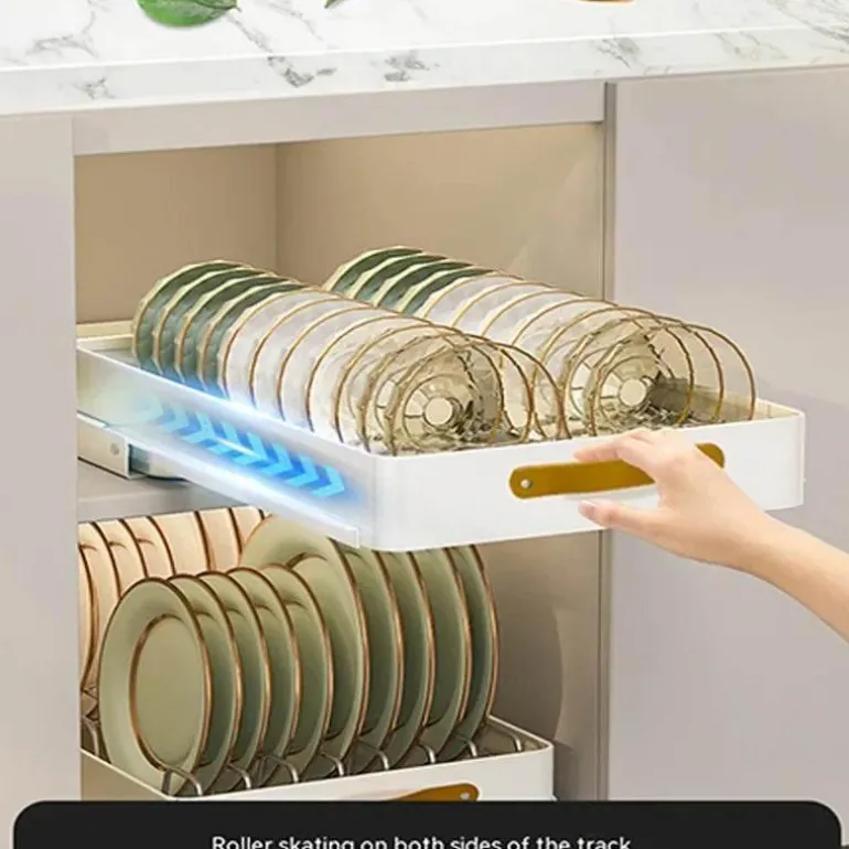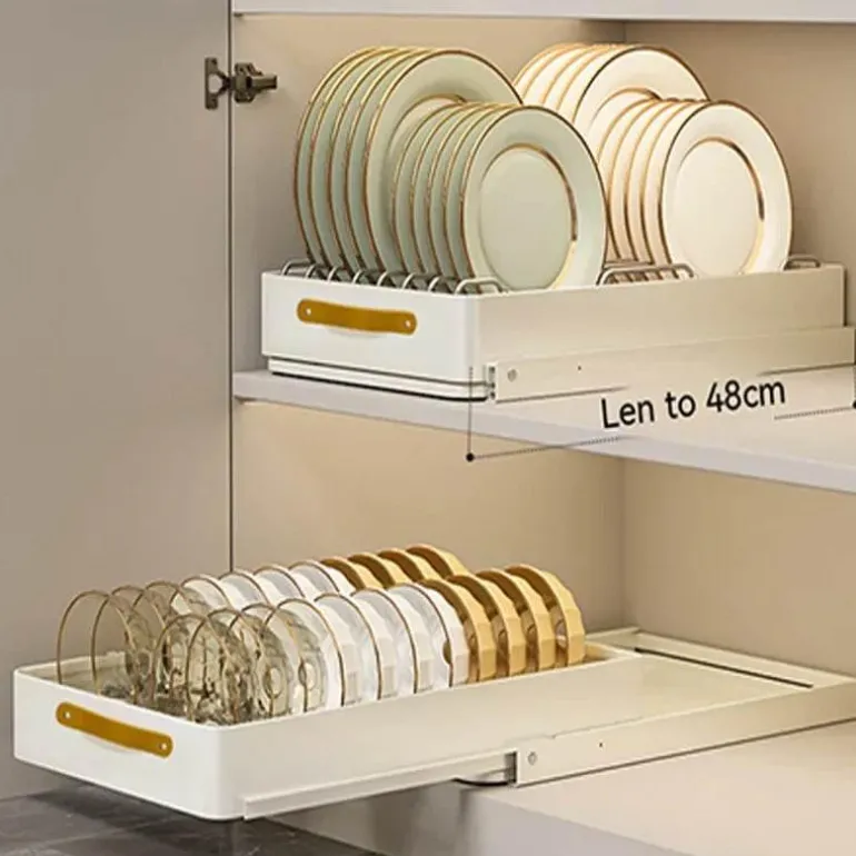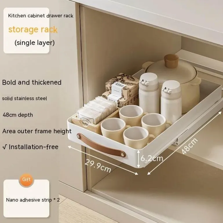 Das ausziehbare Design gleitet sanft auf kugelgelagerten Vollauszugschienen und ermöglicht so mühelosen Zugriff auf alle Töpfe, Pfannen und wichtigen Küchenutensilien. Seine robuste Tragkraft ist ideal für schweres Küchengeschirr und macht ihn zu einem unverzichtbaren Werkzeug für Hobbyköche und Profiköche.
