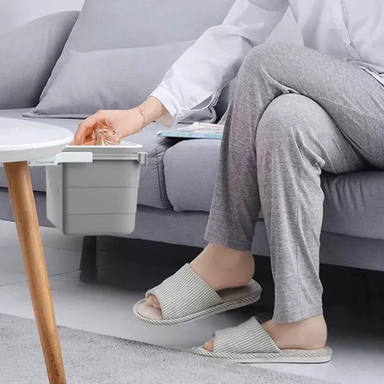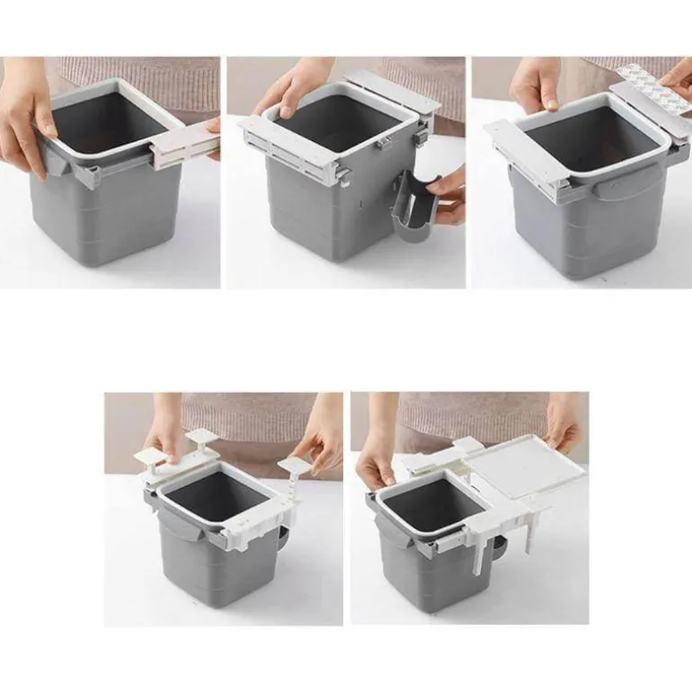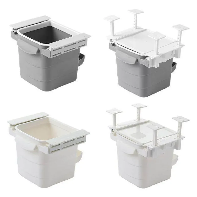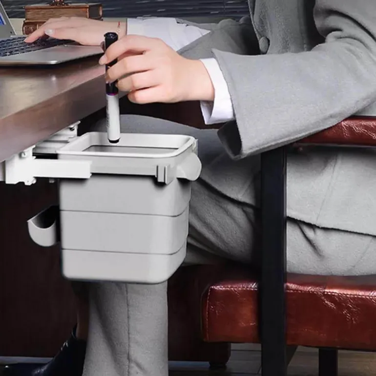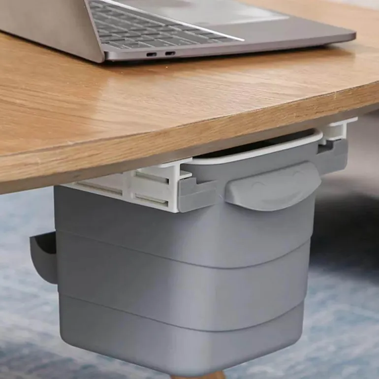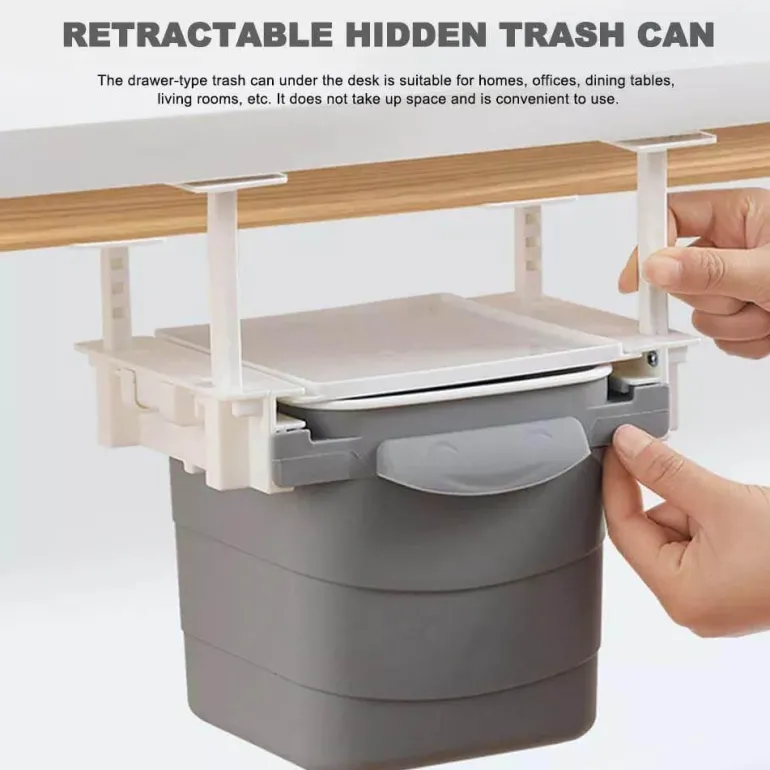 – **Einziehbares Design**: Der innovative Mechanismus ermöglicht es, den Behälter in die Unterseite Ihres Schreibtischs zu schieben, wodurch Abfall effektiv verborgen und Gerüche reduziert werden.