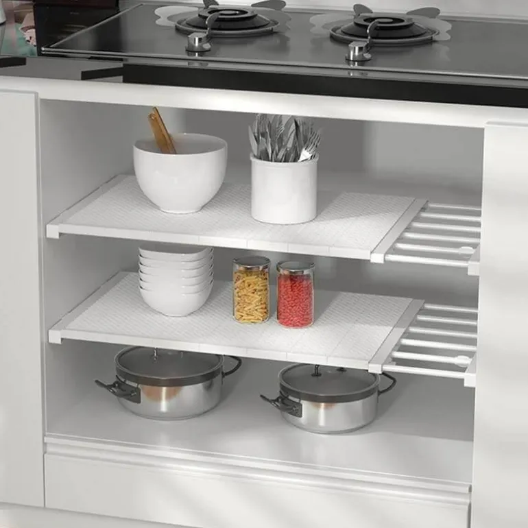 Maximieren Sie den Nutzen Ihrer Küche oder Ihres Badezimmers mit unserem vielseitigen, ausziehbaren Schrankregal. Dieses innovative Regal wurde entwickelt, um oft übersehene Räume effektiv zu nutzen. Es lässt sich an verschiedene Standorte anpassen und eignet sich somit für eine Vielzahl von Oberflächen. Und das Beste: Es benötigt weder Nägel, Bohrer noch Kleber – so bleiben Ihre Wände und Möbel unbeschädigt und makellos.
