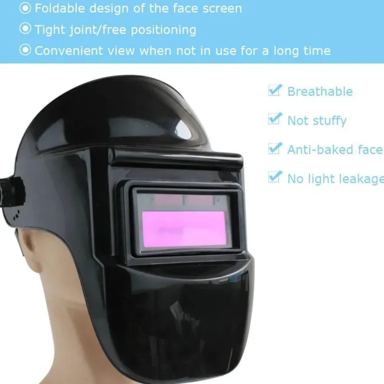 Ausgestattet mit fortschrittlicher automatischer Verdunkelungstechnologie reagiert dieser Helm schnell auf wechselnde Lichtverhältnisse und gewährleistet optimale Sicht und Schutz während Ihrer Schweißarbeiten. Er erfüllt die CE-Zertifizierungsstandards und bietet Vertrauen in seine Qualität und Leistung.
