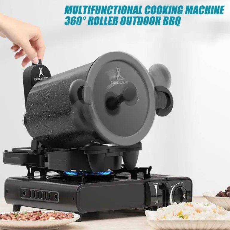 Verbessern Sie Ihr Outdoor-Kocherlebnis mit Leichtigkeit und genießen Sie den Komfort der automatischen Rotation für perfekt gegrillte Gerichte. Dieser Grill ist eine großartige Ergänzung für jedes Outdoor-Kochset und ermöglicht es Ihnen, den vollen Geschmack Ihrer Grillspezialitäten mit minimalem Aufwand zu genießen.