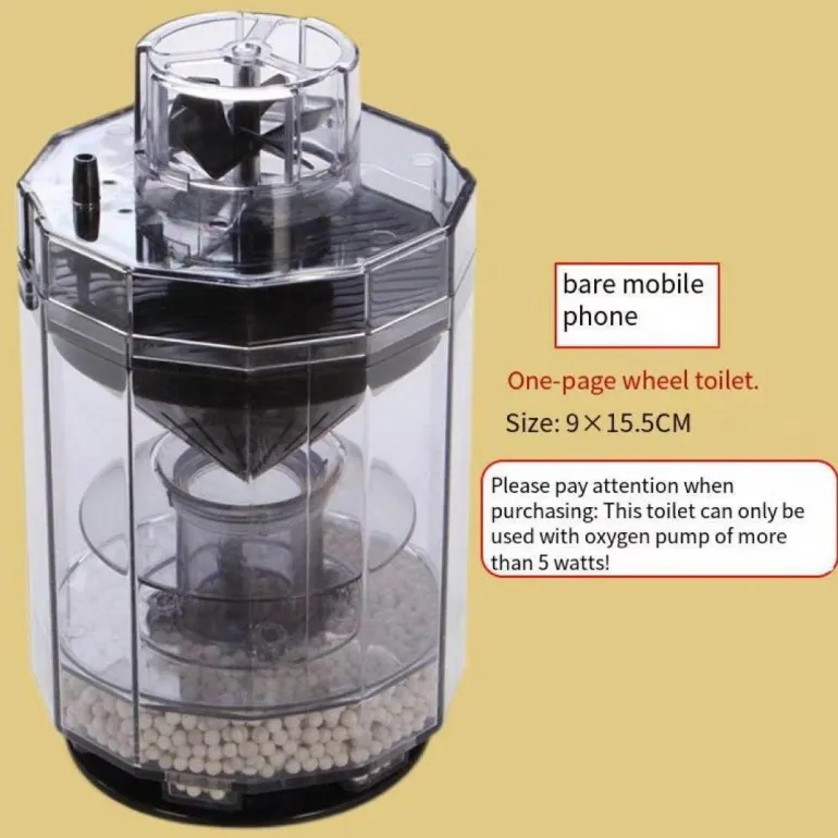 Die Einrichtung des Geräts ist einfach: Stellen Sie es einfach in Ihr Aquarium und schließen Sie es an eine Luftpumpe an. Sobald das Abfallfach voll ist, lässt es sich leicht entleeren und desinfizieren. So ist eine gründliche Reinigung gewährleistet, bevor es wieder in Ihrem Becken eingesetzt wird.