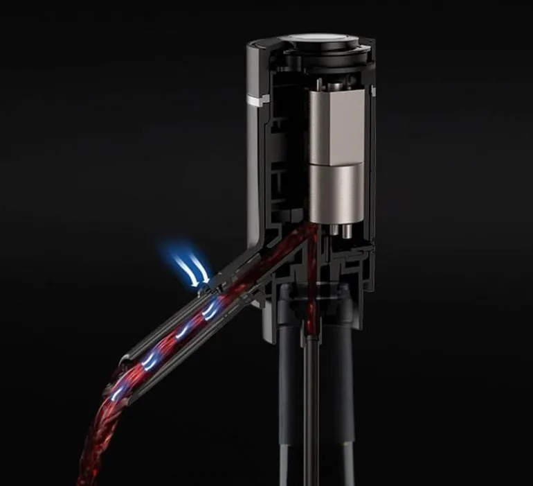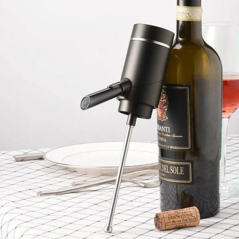 Der elegante automatische, intelligente elektrische Getränkespender ist die raffinierte Lösung, um Ihre Gäste mit Flüssigkeit und Zufriedenheit zu versorgen. Dieses innovative Gerät füllt Behälter automatisch mit Wasser und gibt es nahtlos aus – für müheloses Servieren. Sein einzigartiges Pumpsystem führt Luft in die Flasche, um die Belüftung zu verbessern und so eine achtmal größere Oxidationsoberfläche im Vergleich zu herkömmlichen Trichtern zu schaffen. Dank seines doppelten Saug- und Infusionsmechanismus hinterlässt er effektiv Ablagerungen, sodass kein Umfüllen erforderlich ist.