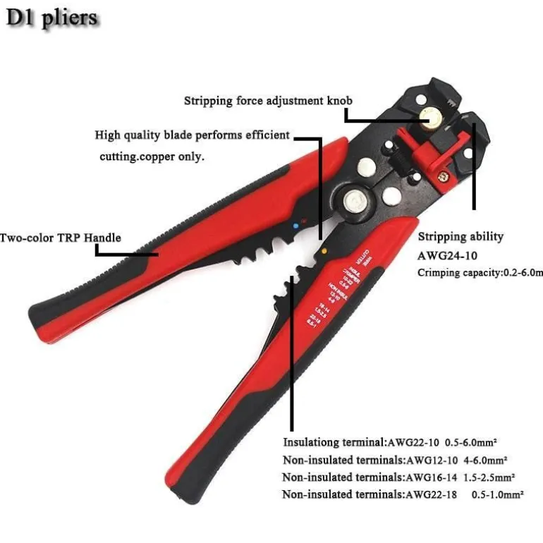 Der durchdachte Griff aus PP- und TPR-Materialien sorgt mit seinem gepolsterten Griff für optimale Hebelwirkung und Komfort bei der Anwendung. Dieses ergonomische Design minimiert die Ermüdung der Hand, egal ob Sie große Projekte oder kleine Aufgaben bewältigen. Der selbstjustierende Griff passt sich verschiedenen Drahtgrößen an und verbessert so Ihre Schneid- und Abisoliereffizienz.