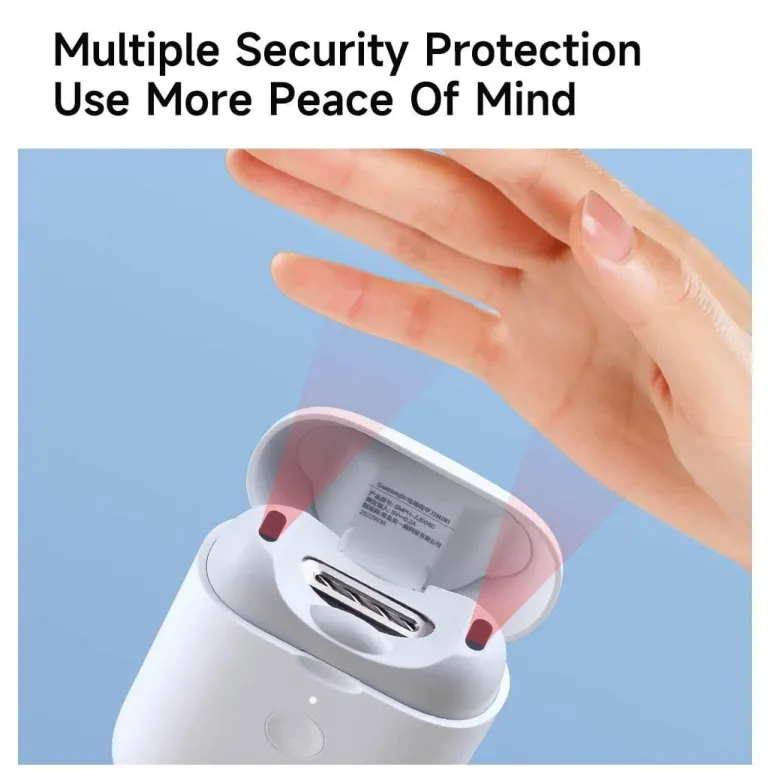 Zu den wichtigsten Spezifikationen gehören eine Nenneingangsspannung von 5 V und 0,3 A, eine Akkukapazität von 600 mAh und ein kompaktes Design mit einem Gewicht von nur 90 g. Mit Abmessungen von 64 mm x 64 mm x 32 mm (2,52 Zoll x 2,52 Zoll x 1,26 Zoll) ist dieses Gerät leicht zu transportieren und ideal für die Nagelpflege unterwegs. Es verfügt außerdem über einen praktischen Typ-C-Ladeanschluss für schnelles Aufladen.