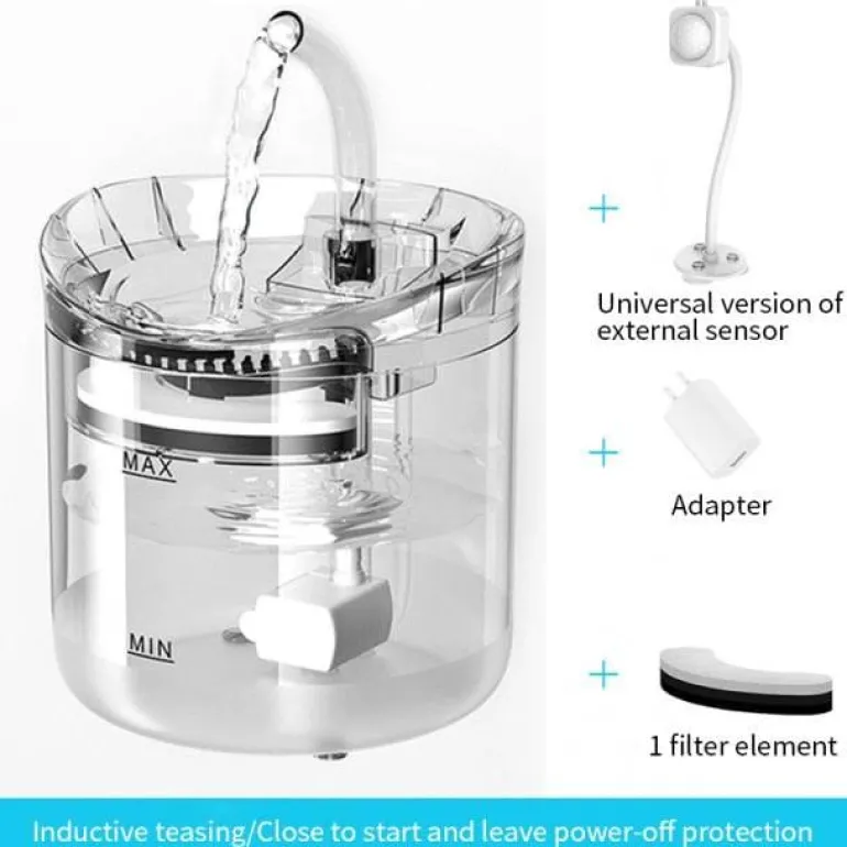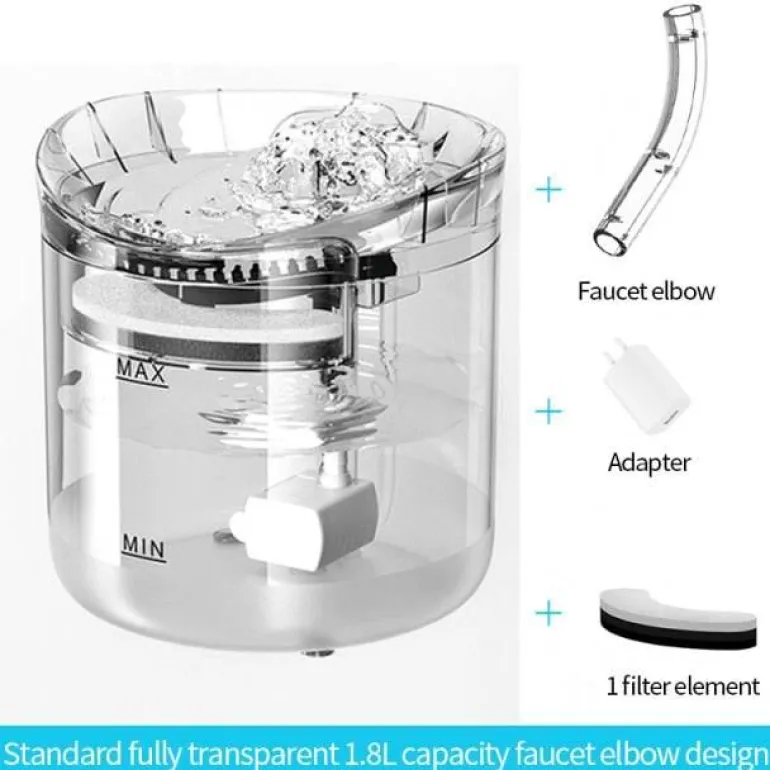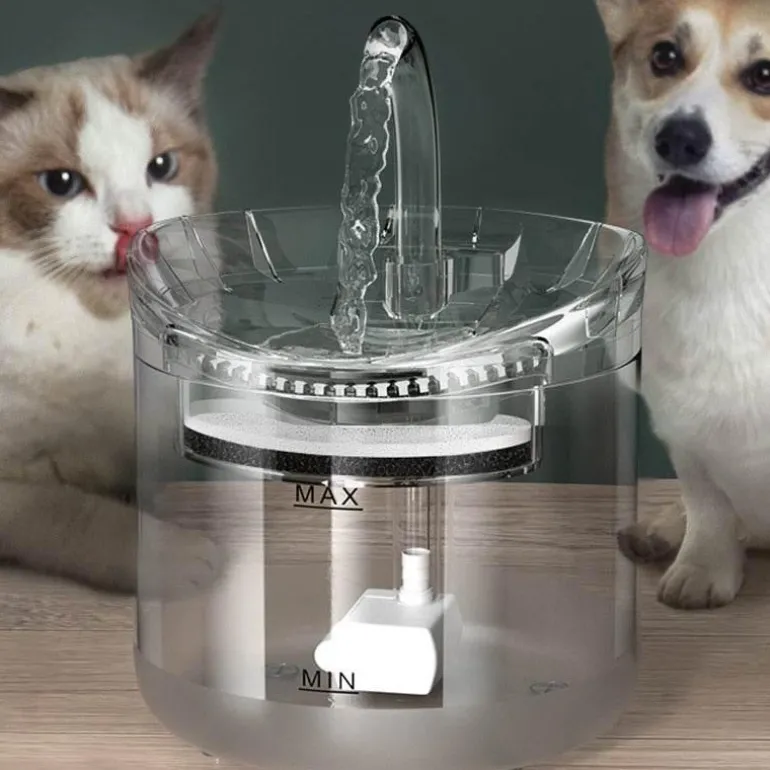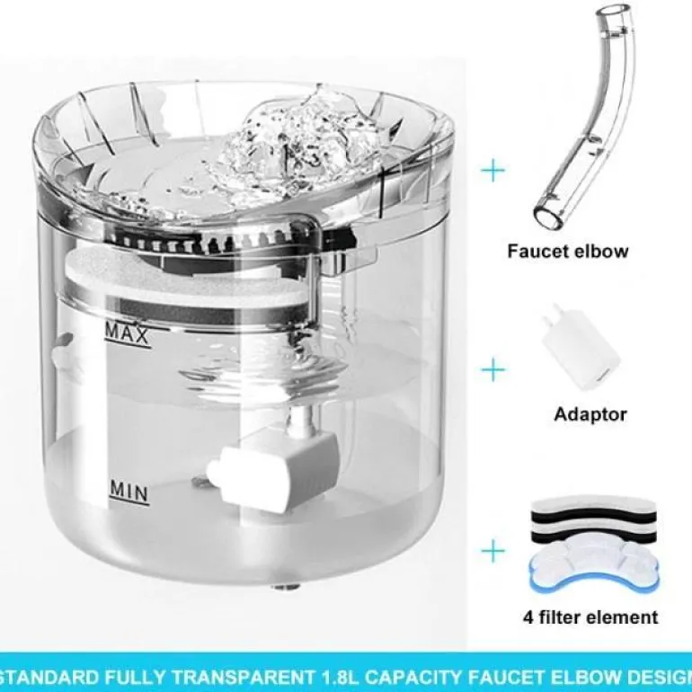 Das vollständig transparente Design ermöglicht Haustieren, das Wasser deutlich zu sehen, was sie dazu anregt, häufiger zu trinken. Der Brunnen wird über ein USB-Kabel mit Strom versorgt und ist leicht zu reinigen, da er im oberen Fach der Spülmaschine spülmaschinenfest ist.