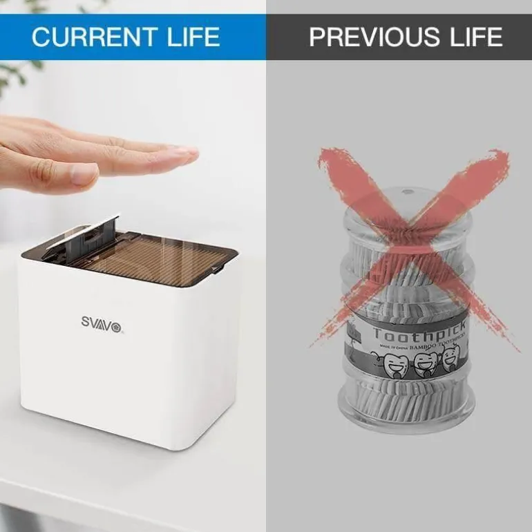 Der Spender verfügt über ein vollständig versiegeltes Design mit integrierten UV-Strahlern, die Ihre Zahnstocher vor Schadstoffen und Insekten schützen, sodass Sie sich um ihre Sauberkeit keine Sorgen machen müssen. Die mitgelieferten PP-Zahnstocher haben eine einzigartige Form mit abgerundeten Kanten und sind eine sanfte und dennoch effektive Option, die Ihr Zahnfleisch schont.